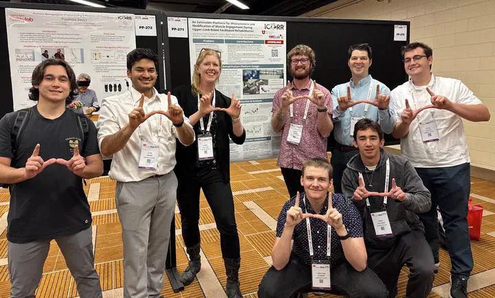 The HRELab had a great conference debut last week in Chicago at RehabWeek and the International Conference on Rehabilitation Robotics (ICORR). Check out our (now uploaded) presentation materials, including our first pilot study on our new upper-limb rehabilitation robot platform and late-breaking work on sonomyography, augmented reality, high-dimensional assistive device control, and synergy analysis.